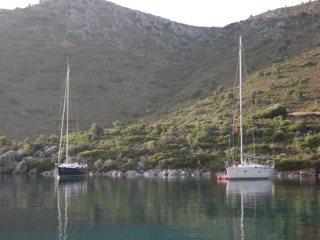 Dirsek buku is a deep inlet type bay on a cape between the Gulf of Hisaronu and Gulf of Yesilova. It is a common stop or the boats on blue voyage between Marmaris and Bodrum if they will not pass Symi Island. Because of its shape it is a sheltered bay from all kinds of weather. In addition, if you start sailing from Hisaronu or Selimiye in the morning and sail around different islands by tacking, you can reach this beautiful bay and rest for a while. Then you can sail back to Hisaronu – Selimiye with wind turning to beam reach to broad reach